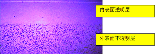 我們生產(chǎn)的石英坩堝一般是由兩層結(jié)構(gòu),其中內(nèi)層為幾乎不含氣泡的透明層,外層是含有大量氣泡的不透明層。內(nèi)層透明層直接與高溫硅液接觸,它的質(zhì)量對(duì)硅單晶拉制過程和質(zhì)量影響甚大。外層不透明層主要是散射來自高溫石墨加熱器的輻射熱量,為單晶硅制作提供相對(duì)穩(wěn)定的熱場(chǎng)環(huán)境
